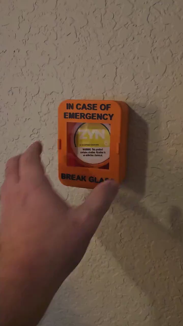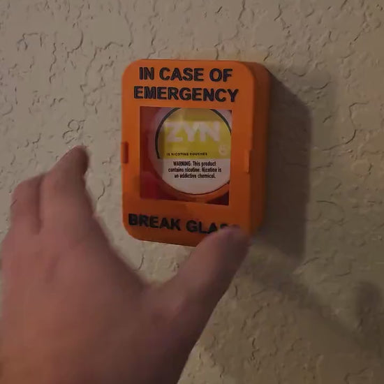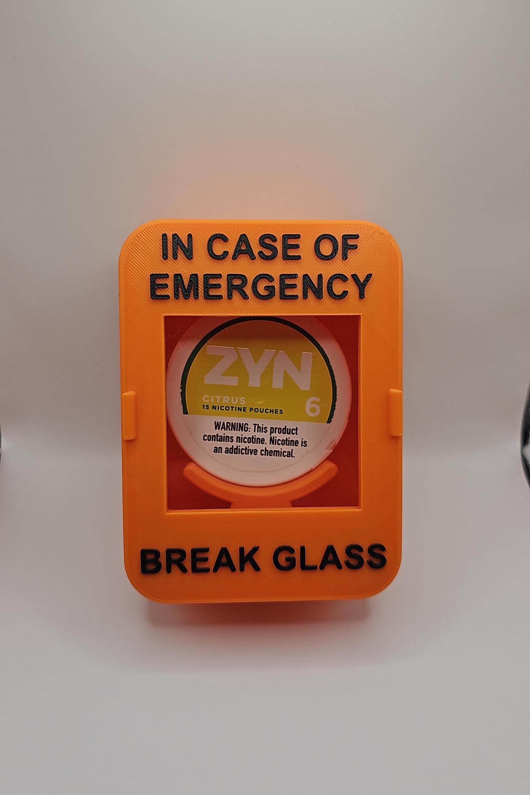 This is more than just a novelty—it’s a fully functional "In Case of Emergency Break Glass" holder, featuring a high-quality PLA Front Panel with an acrylic window for a realistic and polished touch. Designed to hold round cans from popular brands such as Zyn, this unique case combines practicality with a sense of humor, making it a must-have for your space.