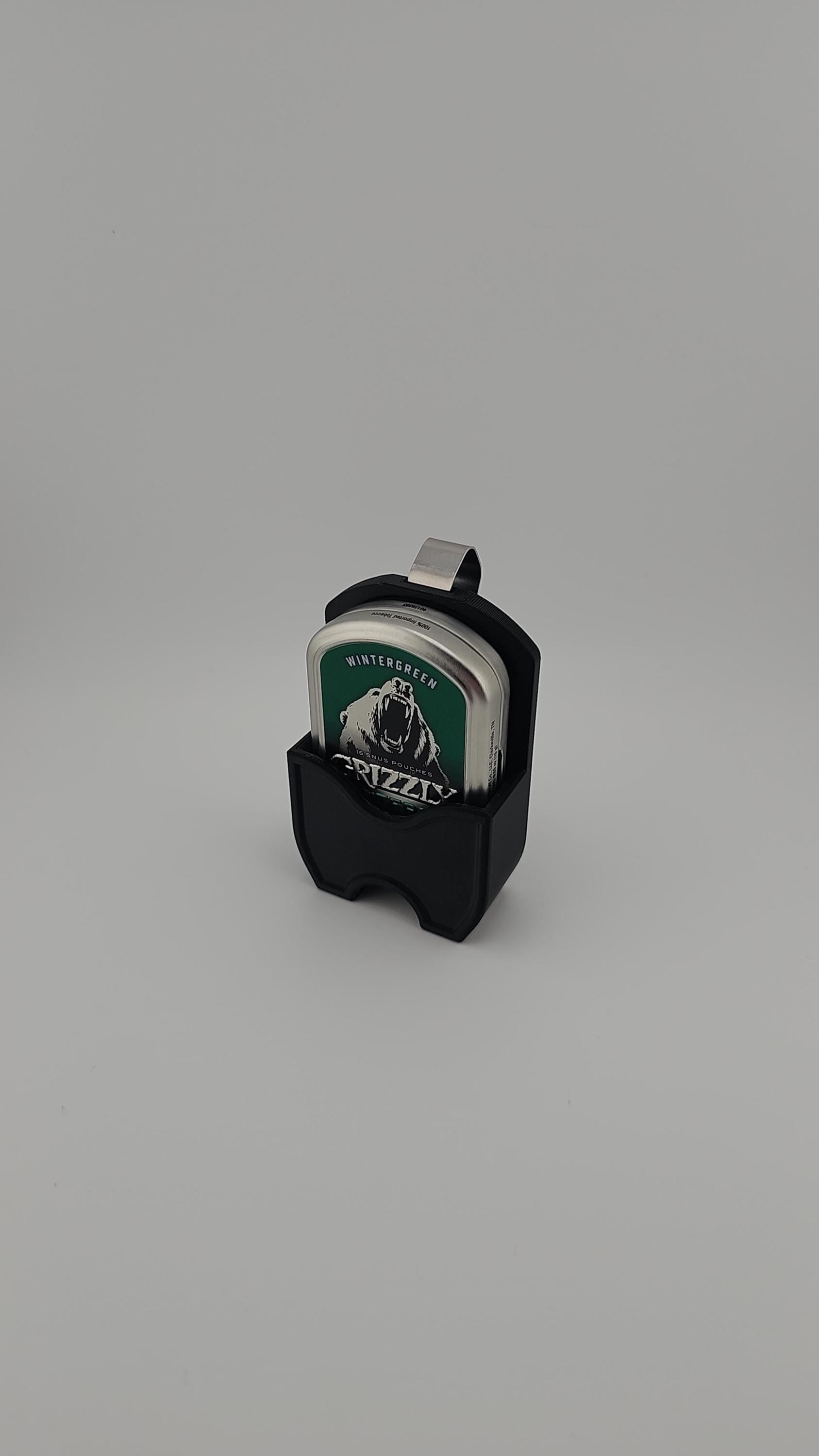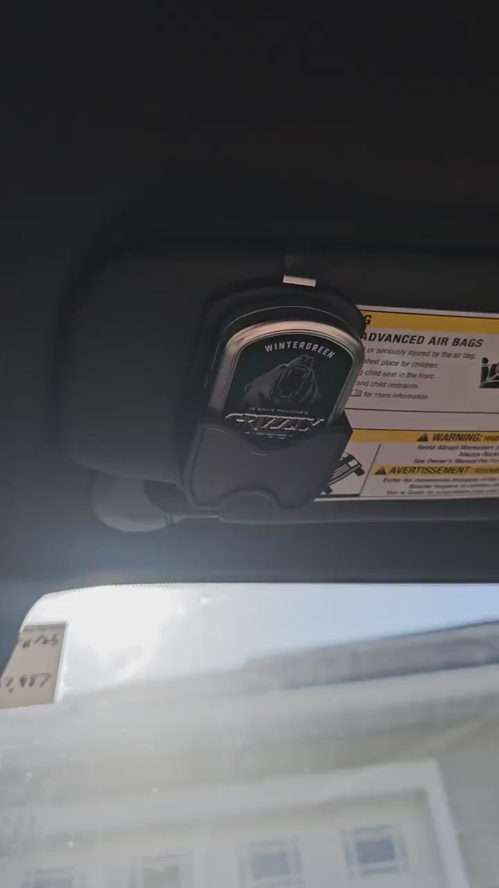 This is a Grizzly SPITFREE METAL Can compatible holder that clips onto your visor for easy access. It comes in a single, double, or triple holder with clips attached.
