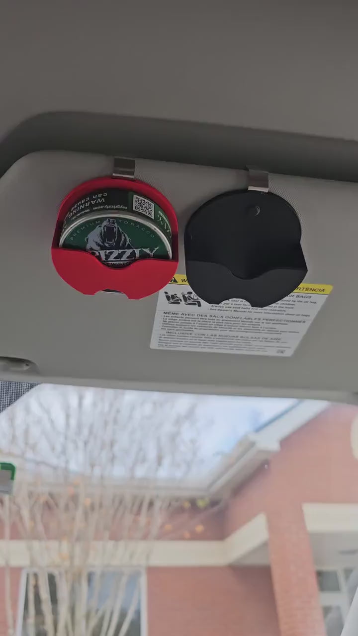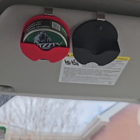 This is a Grizzly can compatible holder that clips onto your visor for easy access. It comes in a single, double, or triple holder with clips attached.