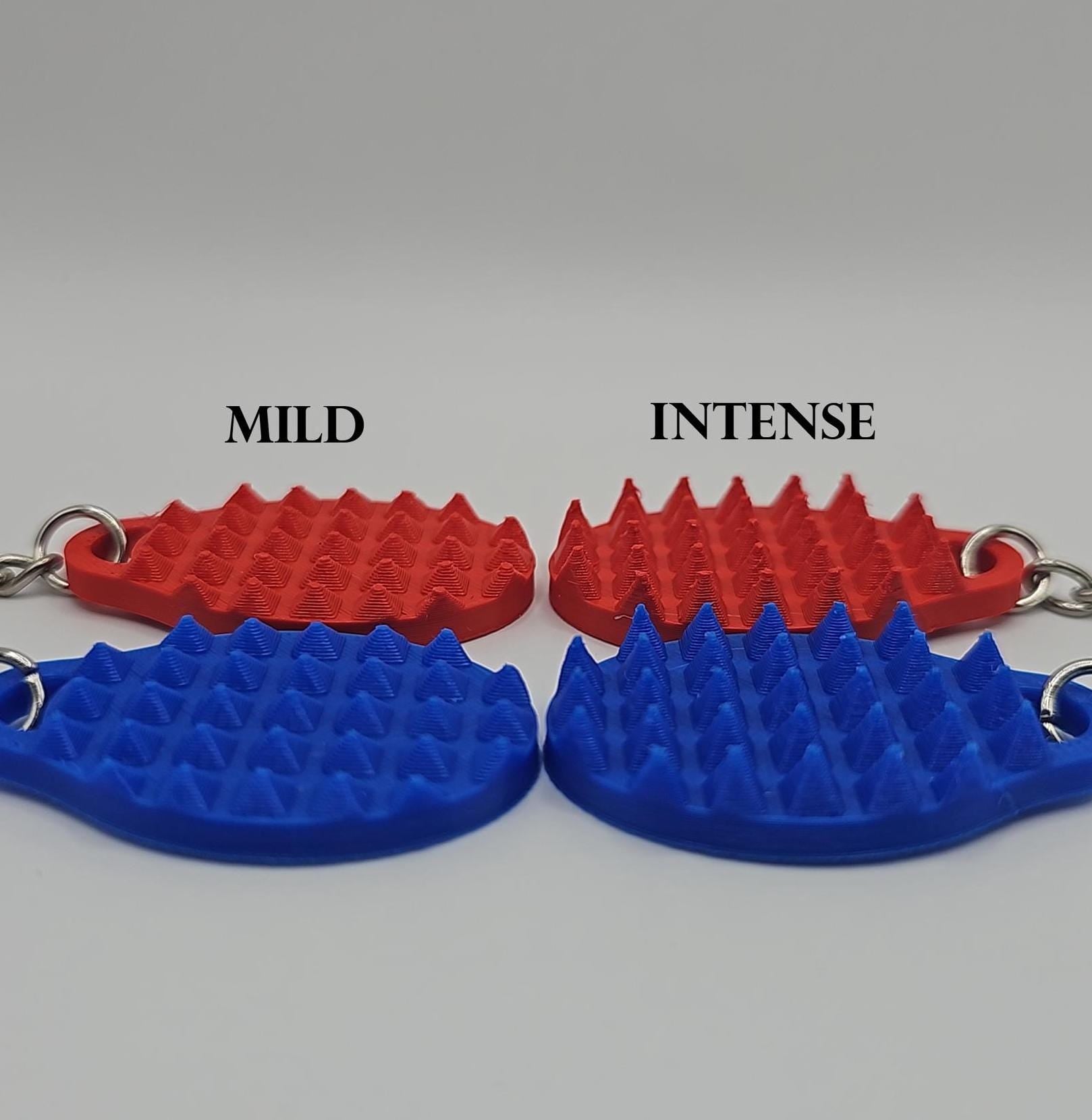 Introducing our unique **Stabby Stone Tiles** — a thoughtfully designed set of two (2) keychain fidget tools! The set comes with two different pain modes: mild and intense, allowing you to choose what suits your needs best. Made from 100% skin-safe materials, these stones provide a sensory experience that can help in managing anxiety, helping stress, and grounding you to the present moment. Measuring approximately 3.5 cm x 2.5 cm (1.3 in x 1 in) each, they fit perfectly on the attached 2-inch keychain, ensuring they’re always within reach when life gets overwhelming.