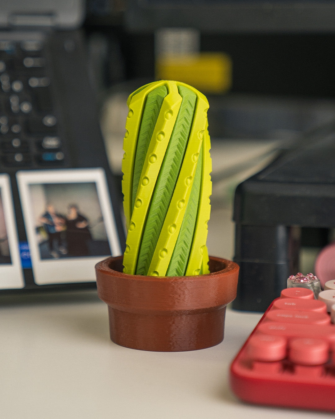 Spin your way to zen with this quirky cactus fidget toy that doubles as desktop décor. Twist, rotate, and reassemble the interlocking pieces for endless fidgeting fun—perfect for keeping your hands busy while your mind stays sharp. Its playful design brings a prickly dose of personality to any desk, workspace, or shelf. Whether you're a fidget enthusiast or just need a fun distraction, this little desert dweller delivers satisfying clicks and spins with zero actual thorns. Desk décor that actually does something!