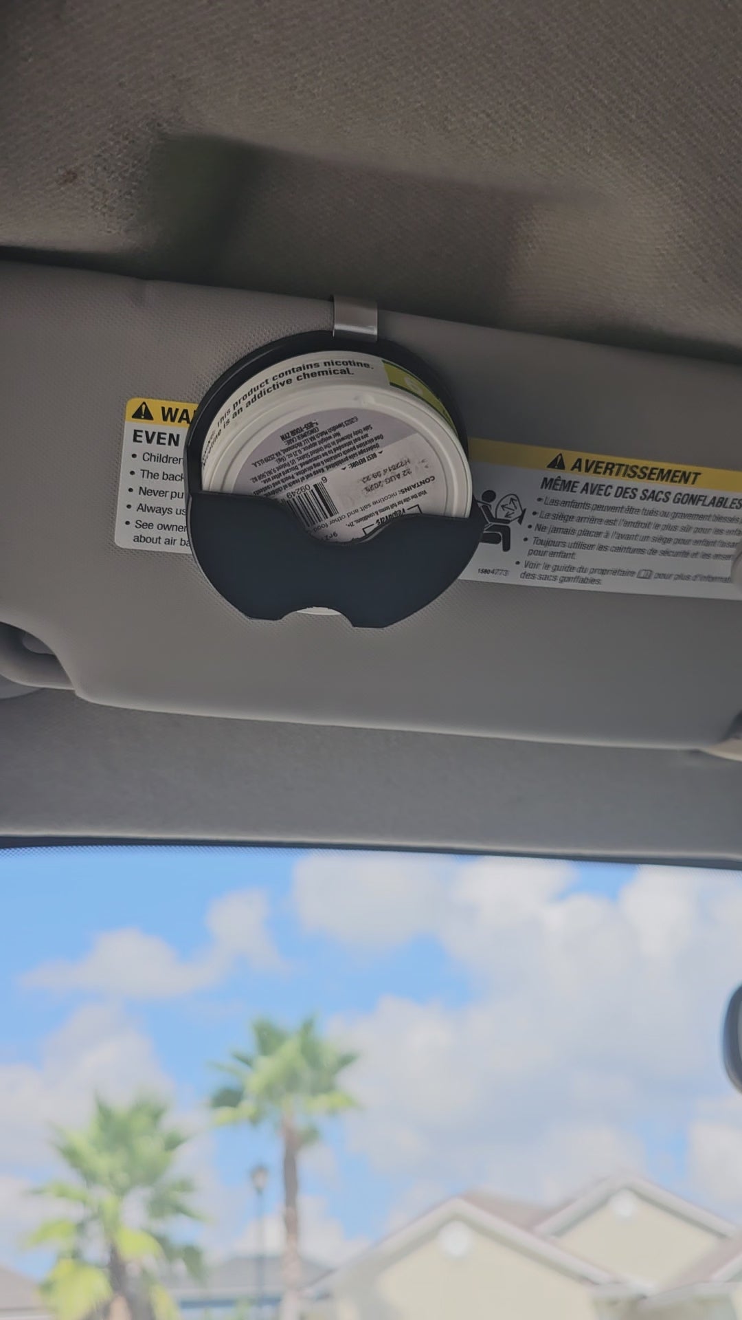 Introducing our original Zyn-compatible Holder, expertly designed to clip onto your vehicle's visor for convenient access to your favorite smokeless products. Handcrafted from high-quality ABS and featuring a sturdy metal clip, each holder is designed to withstand all your adventures. Available as a single, double, or triple holder, this product is perfect for organizing your cans, ensuring that your essentials are always within reach.